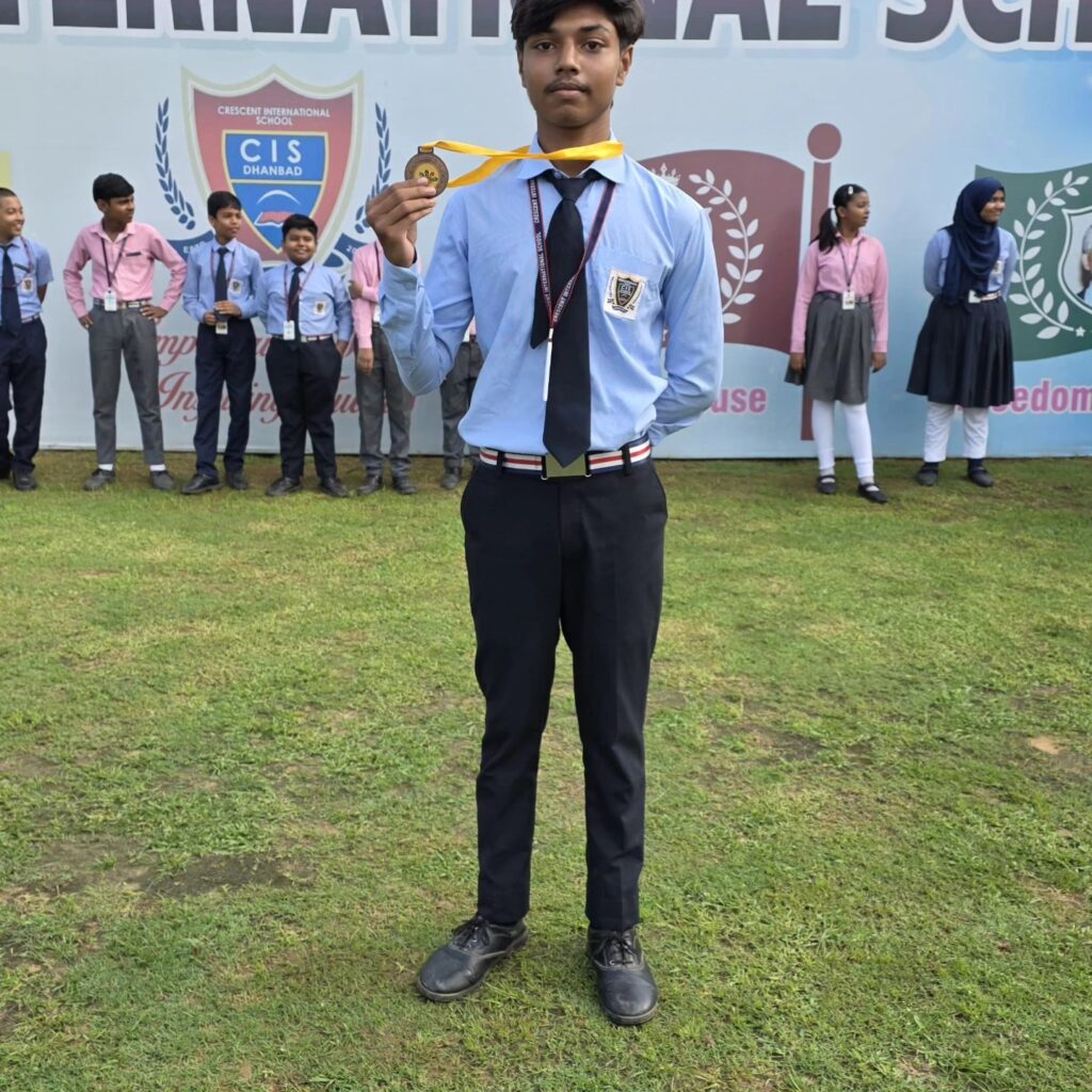 Today, 12th September 2025, Crescent International School proudly welcomed and felicitated our National Level Champion – Dev Kumar Dan, Bronze Medalist in the U-13 Boys Team Event at the 9th National Laser Run Championship 2025, Begusarai (Bihar).